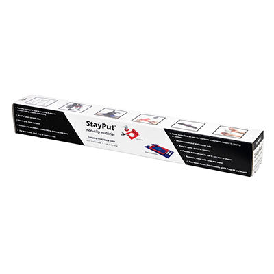 Introducing StayPut Non-Slip Material, the ultimate non-slip solution designed to provide enhanced stability and grip in a variety of settings. This versatile product is perfect for creating a safer and more secure environment in everyday life. Whether you're looking to make an area of your home or workplace more secure, or want to ensure safety for those in healthcare facilities and hospitals, this is the perfect product for you. The material boasts superior gripping power to hold your items securely in place, while also providing a non-slip surface beneath mats, carpets, furniture, and equipment. StayPut Non-Slip Material is the perfect choice for securing a wide range of objects from mixing bowls and plates to office equipment, wheelchairs, and car cushions. This non-slip material is very easy to use! Simply cut it to size with scissors, then peel off the protective film on the top and bottom of the material before applying to any clean, dry surface. For added flexibility, you can even cut it into shapes to fit around corners and obstacles to offer a secure grip in any setting. Our non-slip material is proven to grip objects on angled surfaces, and is guaranteed to provide long-lasting, efficient performance. It is easy to clean and washable so it can be used over extended periods of time. StayPut Non-Slip Material comes in 8-inch and 16-inch widths, with lengths of 1, 2, 5, 10, and 15 yards, as well as three colors (blue, red, and black). 10 and 15 yard rolls come in a convenient dispenser boxes for you to easily cut the material to any length you desire. StayPut is also available as self-adhesive strips or netting to suit different needs.