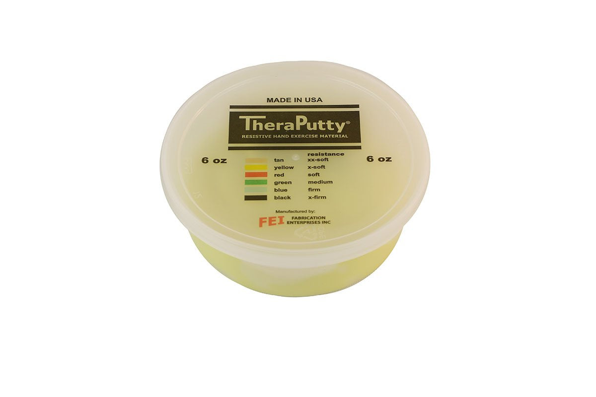 CanDo TheraPutty Exercise Putty is the standard in resistive hand exercise material. TheraPutty is the name trusted by more doctors, therapists, hospitals and clinics than any other to strengthen hand muscles and grip, improve fine motor skills and decrease stress. With each squeeze, pinch, stretch, grip and/or twist, TheraPutty puts you on the path to healthier hands and fingers, improves fine motor skills and decreases stress. Each of the six color-coded putties features industry standard resistances, with a progressive firmness ranging from xx-soft to x-firm. The convenient size and easy-to-open containers enable users to compliment the work done at the clinic or hospital, allowing strength and mobility progress to continue at home. This is a 2 oz. container of the Yellow Theraputty - X-Soft. With six resistance levels, options to make exercises more challenging include using a higher-level resistance putty, a larger quantity or increasing the number of repetitions. An illustrated guide featuring nearly a dozen exercises is available for free on our website. Accessories that stimulate functional activity, such as Puttycise Tools, are available separately. The putty is gluten, Latex and casein-free. Safe for all, CanDo Theraputty is non-toxic if swallowed and will not dry out.